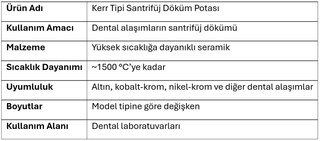 Kerr Tipi Santrifüj Döküm Potası: Dental döküm işlemlerinde dayanıklılık ve güvenin vazgeçilmez adresi.